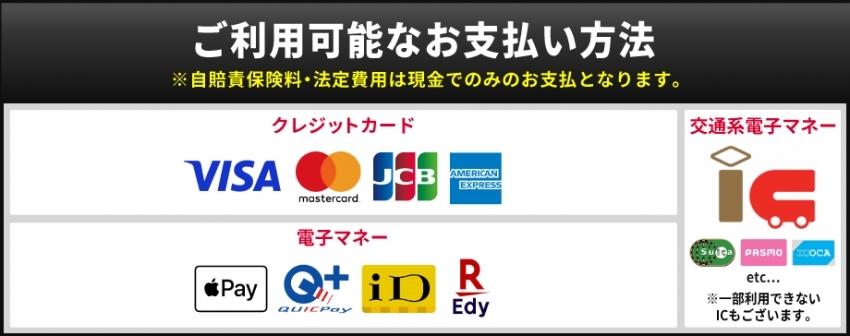 ※自賠責保険料・法定費用は現金でのみのお支払となります。